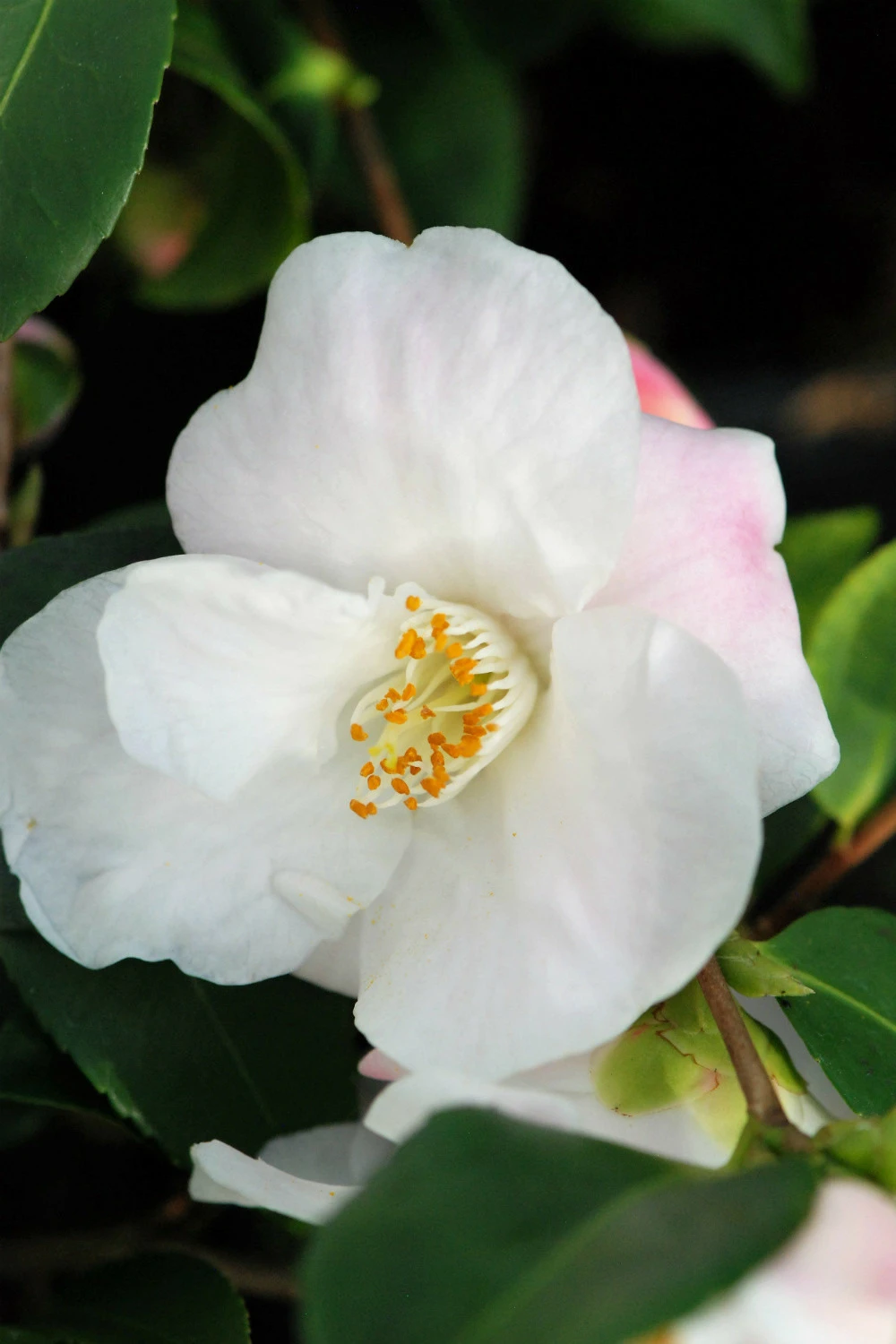 sa deuxième particularitĂ© en effet est de faire partie des camĂ©lias les plus odorants. Un parfum Ă savourer lors de la floraison. De très belles petites fleurs blanches avec quelques reflets roses apparaissent dès la fin de l’hiver.