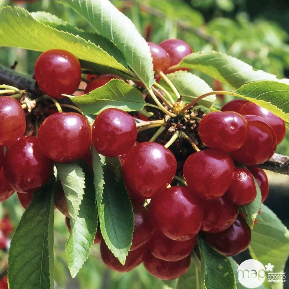 VariĂ©tĂ© de bigarreau très vigoureuse, et fertile. GreffĂ© sur merisier et non taillĂ©, l’arbre peut mesurer jusqu’Ă 16 mètres de hauteur, avec une croissance pouvant atteindre un mètre par an ! C’est une variĂ©tĂ© très ancienne dĂ©jĂ connue en France avant 1540. DĂ©but avril, une floraison magnifique et abondante a lieu : de petites fleurs blanches embaumant tout le jardin. On peut ainsi le prĂ©coniser dans toutes les rĂ©gions de la France sans problème. Fin juin, de gros fruits en forme de coeur apparaissent, de couleur jaune vif passant au rouge clair, et Ă chair jaune croquante, ferme, sucrĂ©e, acidulĂ©e. Le jus de cette variĂ©tĂ© ne tache pas.