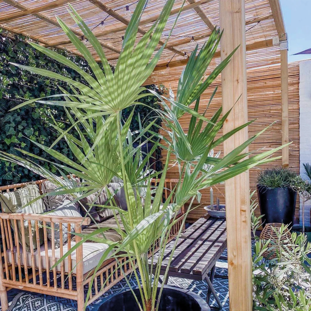 chamaerops humilis, plus connu sous le nom de palmier nain européen, a de belles feuilles vertes brillantes et est également rustique jusquà -15°c. Son aspect exotique garantit que vous êtes en vacances dans votre propre jardin et il tolère la lumière directe du soleil, tout comme sous les tropiques, ce qui le rend facile à entretenir. Outre le fait que le chamaerops humilis est une plante de jardin pratique, il est également fantastique !