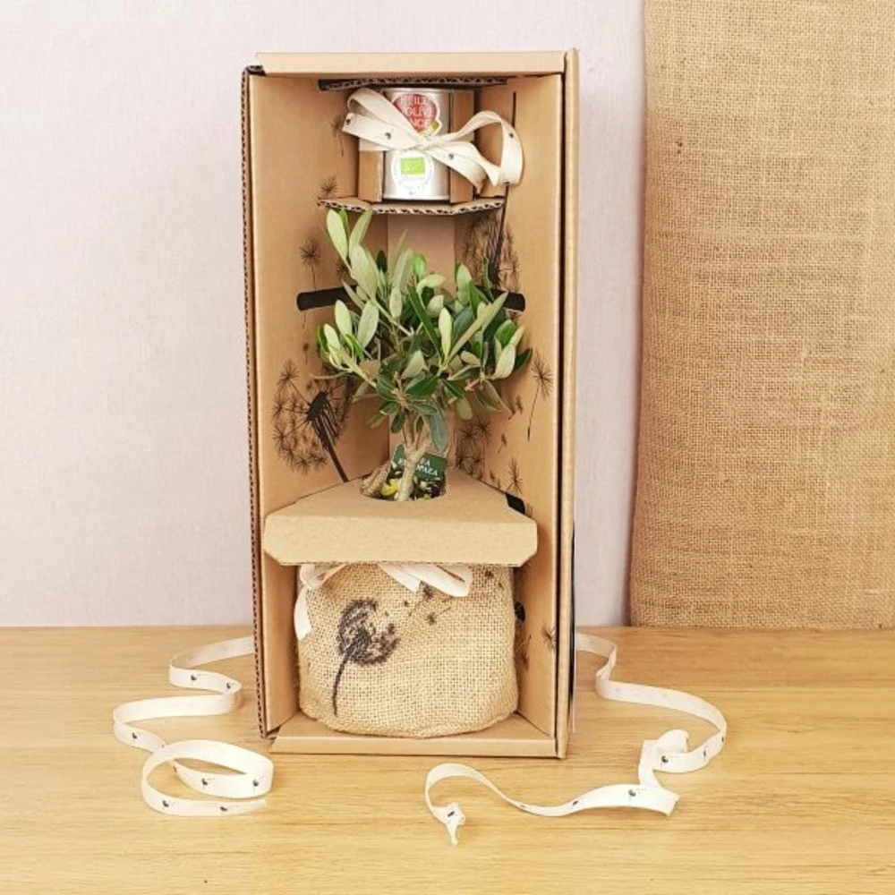 livré dans son coffret cadeau, son cache pot en toile de jute naturelle, votre message et la fiche entretien.