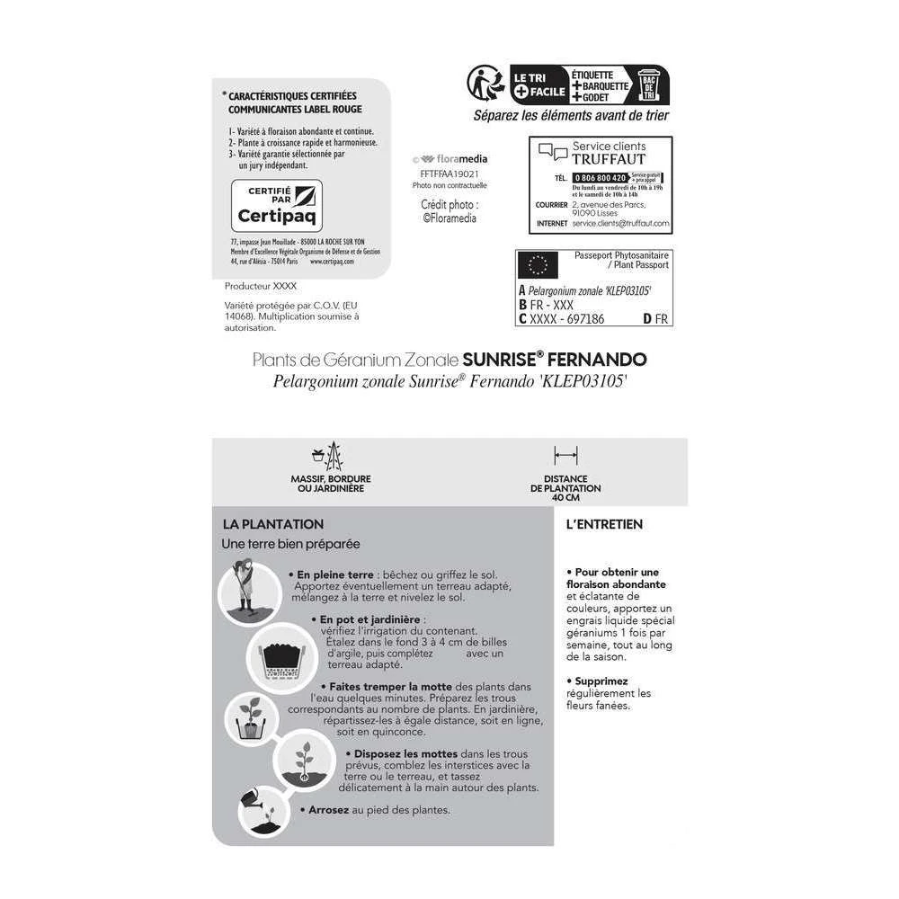 Pour obtenir une floraison abondante et éclatante de couleurs, il faut apporter un engrais liquide spécial géraniums 1 fois par semaine, tout au long de la saison.
