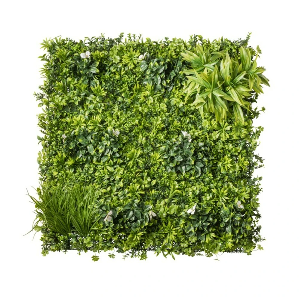 Faites respirer tous les espaces sans effort grâce à nos murs végétaux artificiels imitation naturelle ! chic et champêtre, le mur végétal est une solution d’occultation ou d’ornement jouant la carte du naturel. Ce produit est aussi bien adapté aux jardins, terrasses et balcons. Il est facile à poser sur des panneaux rigides de clôture ou sur des murs et ne nécessite aucun entretien. Conçus par carré de 1 mètre, les murs végétaux peuvent se clipser entre eux à l’infini : laissez votre créativité s’exprimer ! grande qualité de fabrication et résistance aux uv et à l’eau. garantie : 5 ans. cinq modèles pour répondre à tous les styles : le modèle amazone : foisonnant, dense et luxuriant avec des fleurs fuchsia la version fougère : très verte et proche des plantes que l’on trouve en europe la version liseron : champêtre et composée de trèfles, de petites feuilles et de fleurs blanches esprit « campagne » le modèle lierre : classique et imitant différents types de lierre pour un effet « plante grimpante » le modèle tropical : ambiance jungle tropicale avec des herbes hautes, des feuillages, et quelques fleurs rouge vif monté sur support plastique, sans métaux lourds et non toxique. attaches vendues séparément.